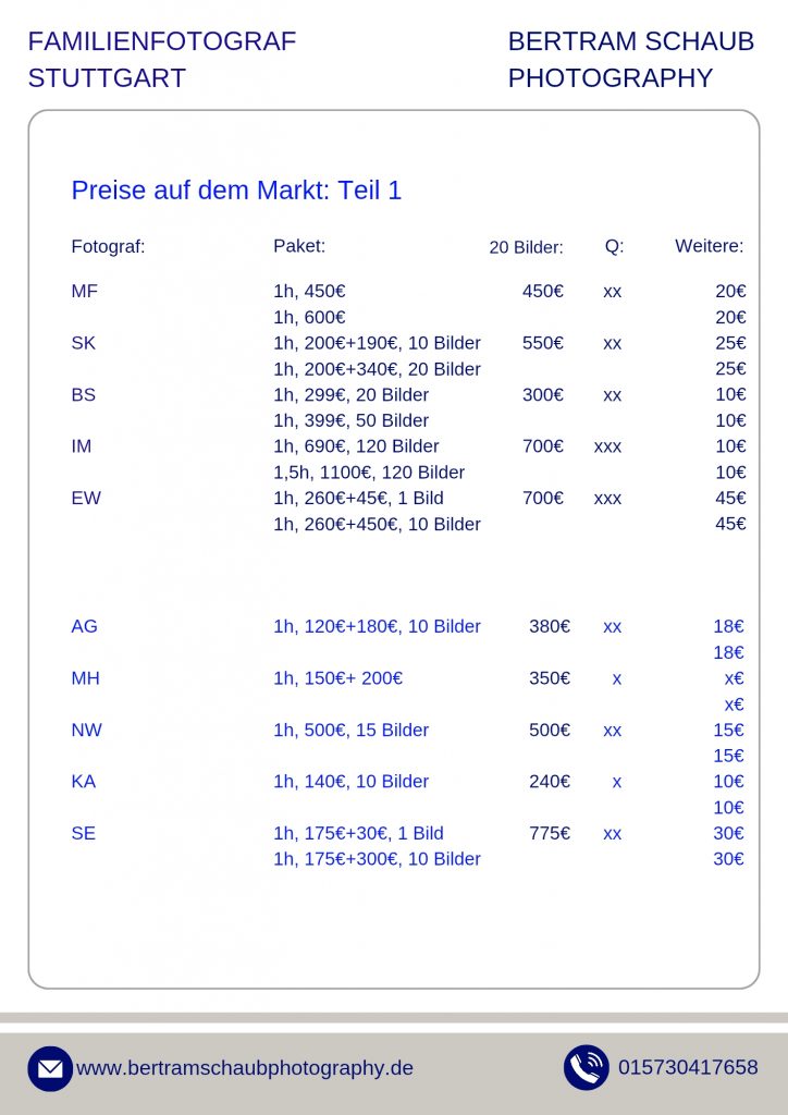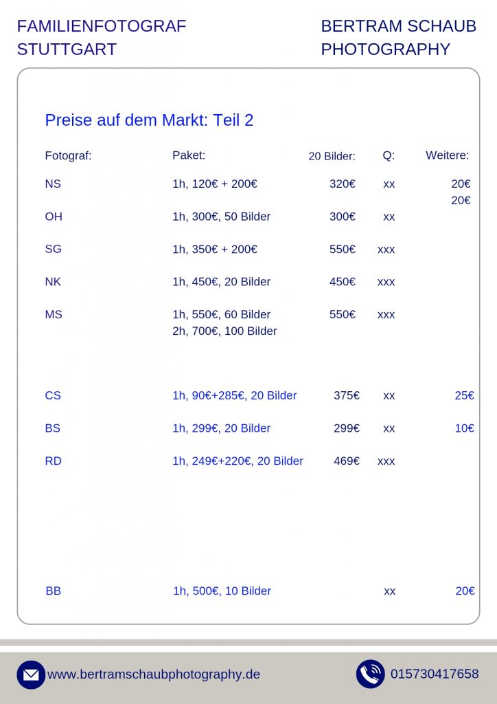 MINI-SHOOTINGS – PREISE & LEISTUNGEN