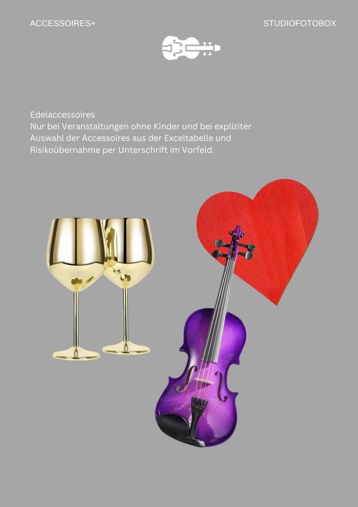 Geige, Trompete, Goldkelche, Kronen, Schilder, Riesenherzen und stilvolle 3D-Props – edel, elegant, hochwertig.