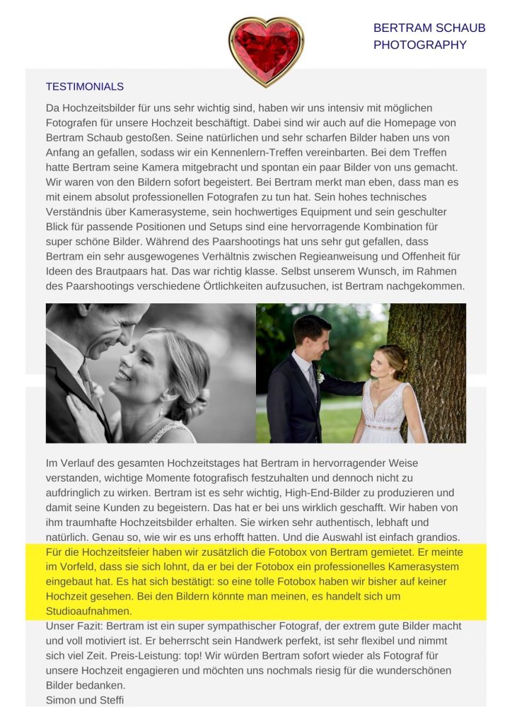 Beachten Sie die Sonderkonditionen, wenn Sie mich als Fotografen buchen.