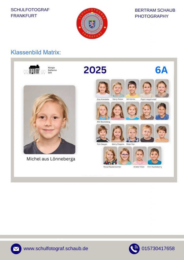 Schlagworte: Schulfotograf Frankfurt, Klassenfotos Frankfurt, Schulfotos online bestellen, DSGVO Schulfotografie, mobiles Studio Frankfurt, Schülerausweis Druck, Klassenmatrix, Faceboards, Stickeraktionen.